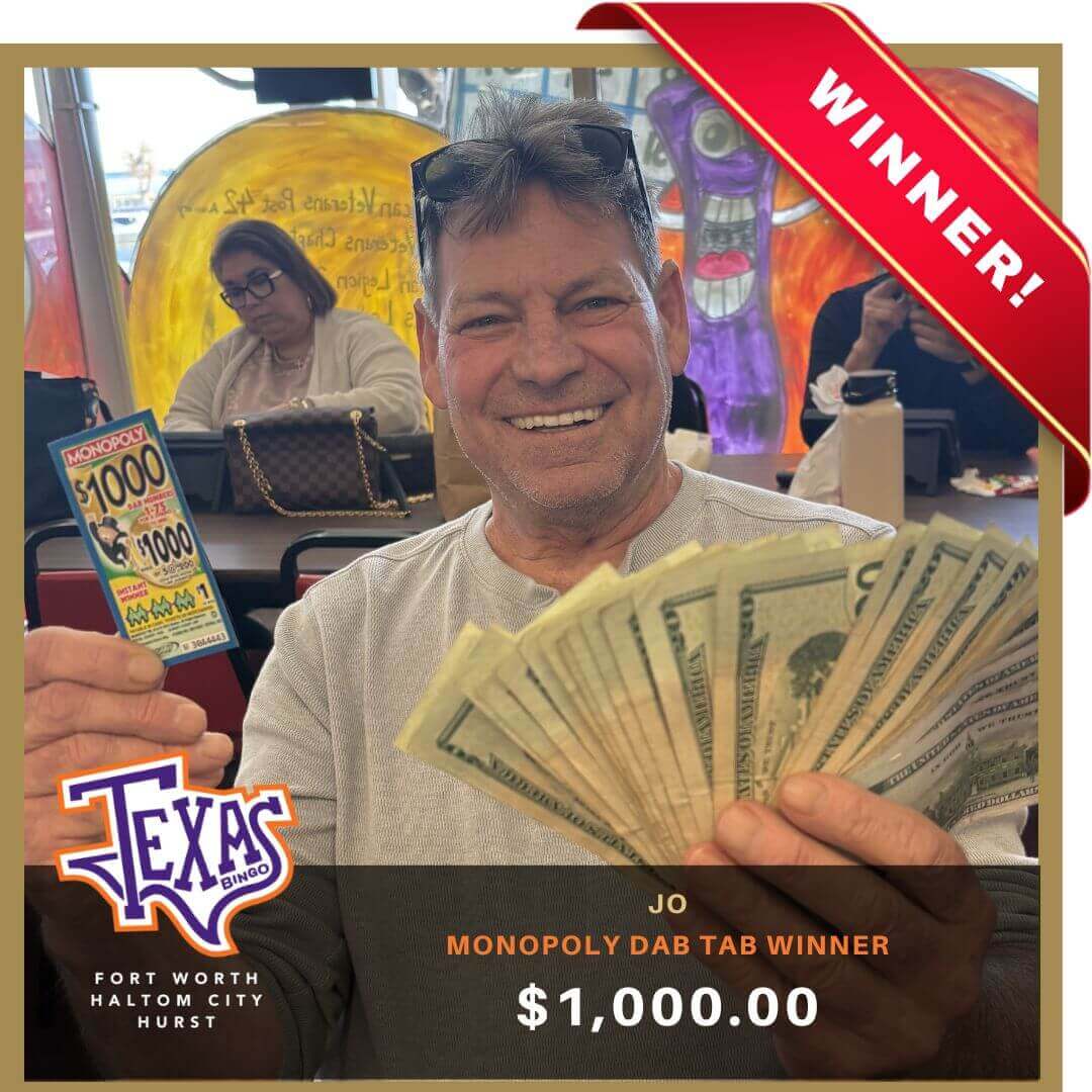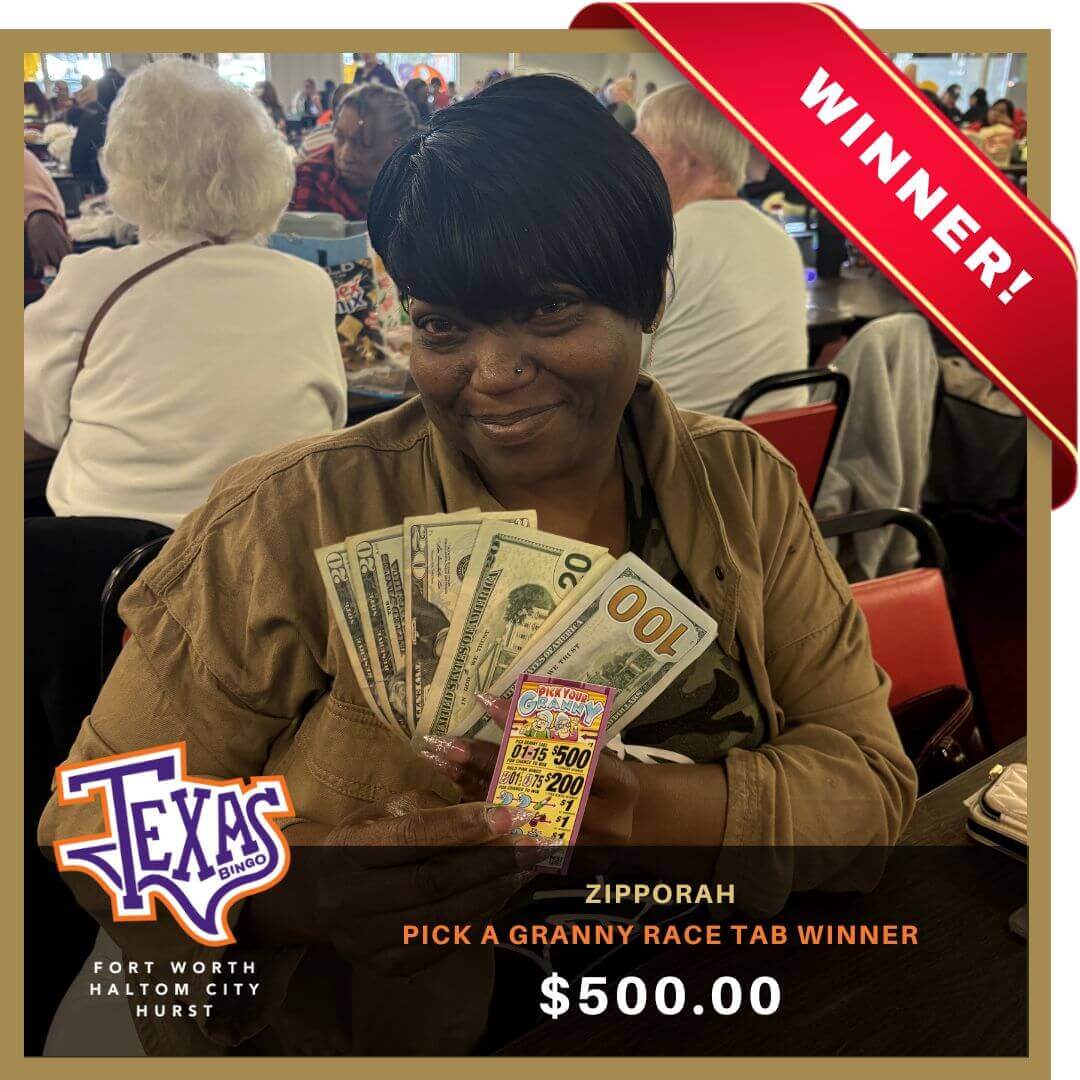 Add excitement to your bingo experience by playing pull tabs. These pop-open, pull tab tickets produce a predetermined number of instant winners and a series of hold tickets which are held for a larger prize that is paid out after the “race” or “dab” game is called. Pull tabs are the hottest game we play at Texas Bingo, giving away thousands of dollars daily to lots of lucky winners.